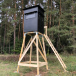 Zum Schluss wird die gewünschte Jagdkanzel auf dem fertigen Kanzelbock montiert. Je nach Standort kann eine zusätzliche Bodenverankerung sinnvoll sein, um die gesamte Konstruktion noch windsicherer zu machen.